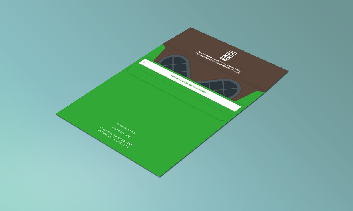 Direct Mail Mockup - Envelope Tear open: Reuse for donated phone return mail, reseal tape underneath the flap