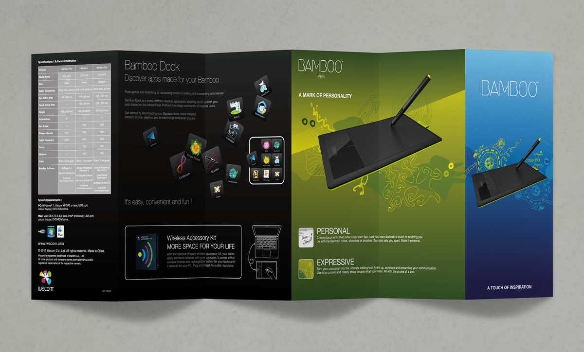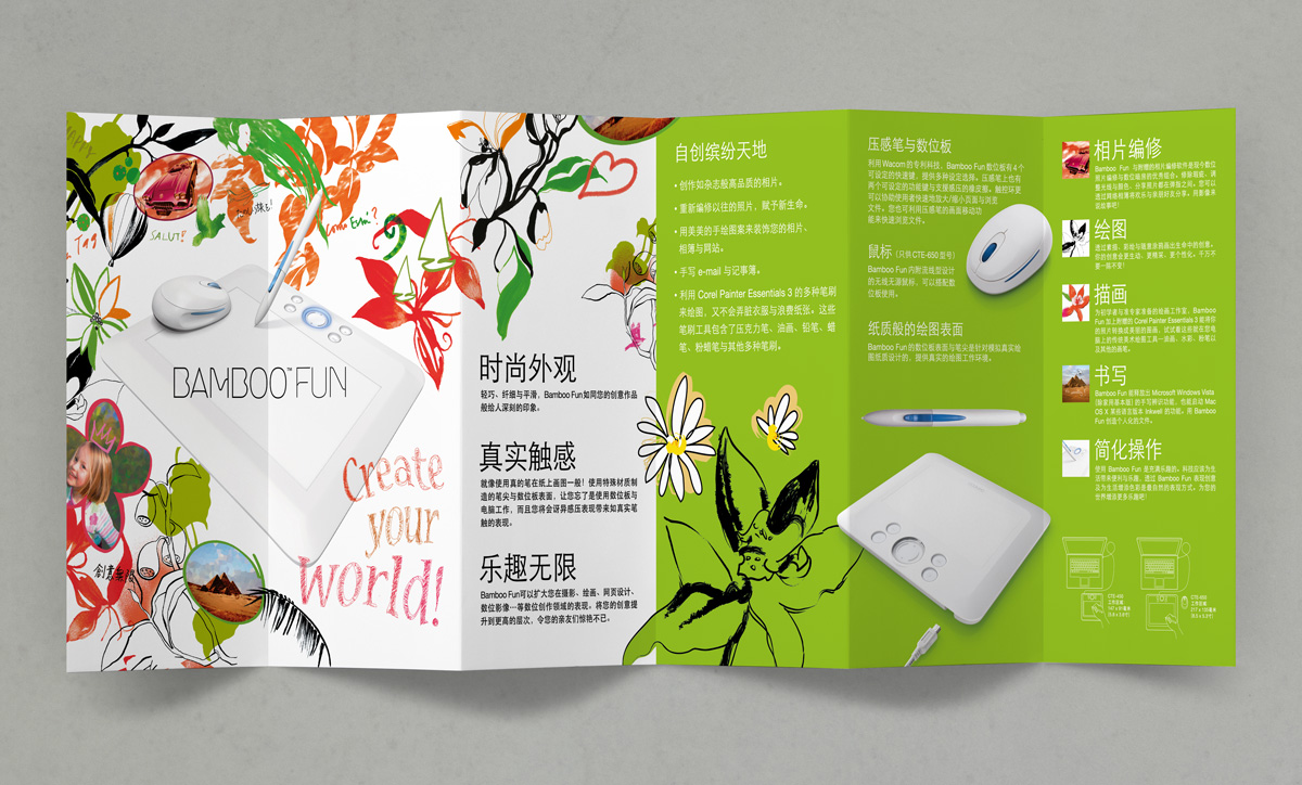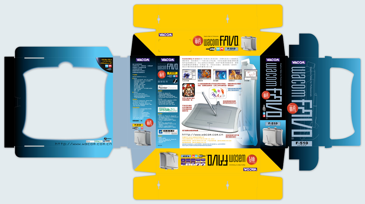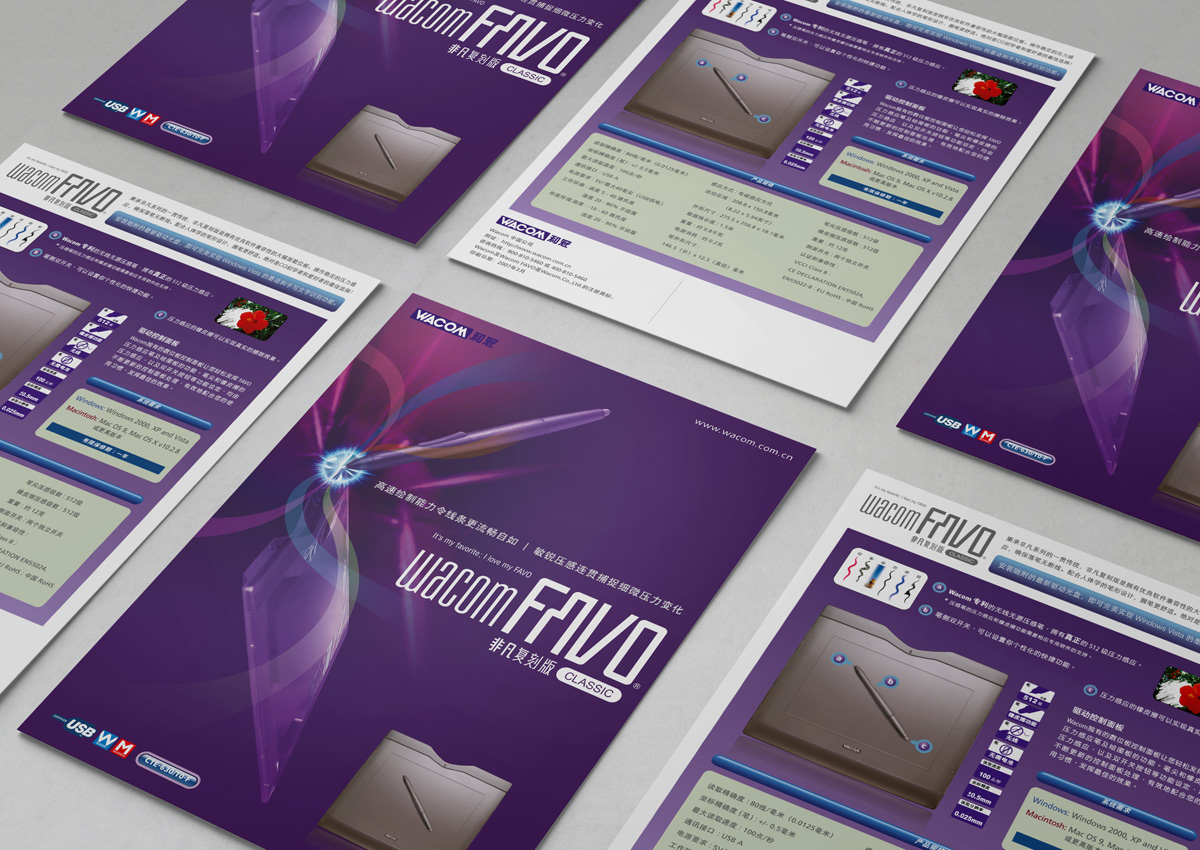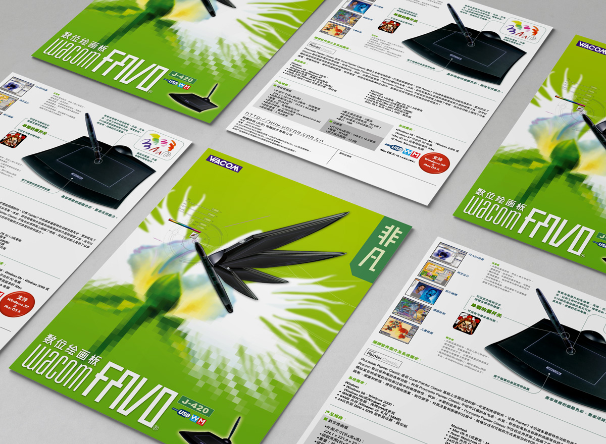 As the design agency of Wacom Asia Pacific and Wacom China since 2001, we are responsible for the graphic design and localization of packagings as well as related collateral materials, which includes the series of Intuos, Graphire, Cintiq & Bamboo, etc.