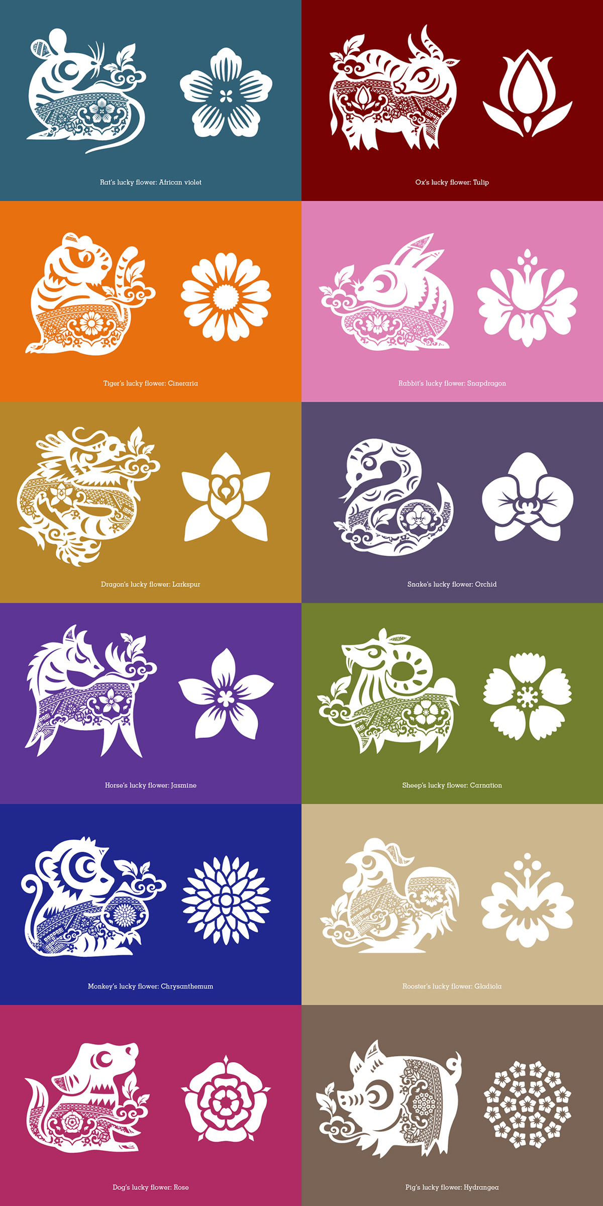 A set of twelve zodiac identities (Re-interpretation of chinoiserie willow pattern with the connotation of tea and zodiac lucky flower)